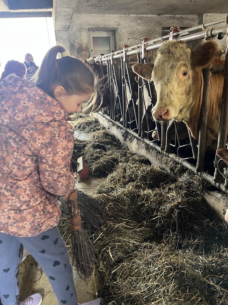 Die 3b und die 3c durften einen Bauernhof in Engerwitzdorf besuchen. Dort lernten die Kinder wie Milchkühe leben und was sie brauchen. Die Schüler*innen durften beim Füttern helfen, Kühe und Kälber streicheln und sogar selbst melken. An diesem Tag wurden viele Ängste überwunden.