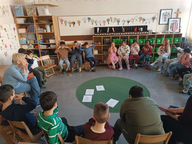 Nach dem Vorlesen hatten die Schüler:innen die Möglichkeit, sich intensiv mit den Themen der Geschichten auseinanderzusetzen. Sie konnten kreativ werden, indem sie eigene Kunstwerke gestalteten, musikalisch aktiv wurden, Lieder einstudierten oder sich bei verschiedensten Spielen und Aktivitäten in Bewegung ausdrückten.
